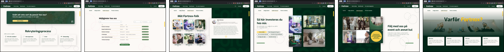 Together with Fortnox, we crafted a design brief to tackle a bottleneck on the career page—candidates were dropping off before completing applications. The site lacked character, didn’t accurately reflect Fortnox as an employer, and the information flow was fragmented.