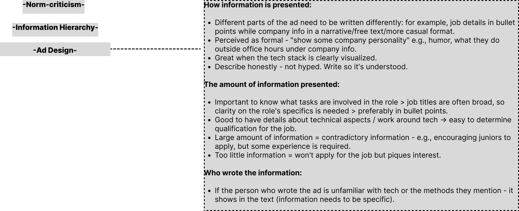 Overall, we identified three themes influencing how tech candidates assess their qualifications: Norm-criticism, Information Hierarchy, and Ad Design.